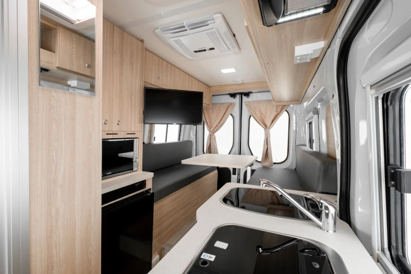 O Euro Mini é indicado para quem busca um motorhome mais simples e compacto, ideal para duas pessoas. Sem toalete nem cozinha interna, ele funciona muito bem para roteiros em que a infraestrutura de campings, hostels e outras paradas será utilizada como apoio. O foco está na mobilidade e na experiência de estrada, com o veículo servindo como base de deslocamento e descanso. Uma boa escolha para quem quer começar no universo dos motorhomes com uma proposta mais leve.
