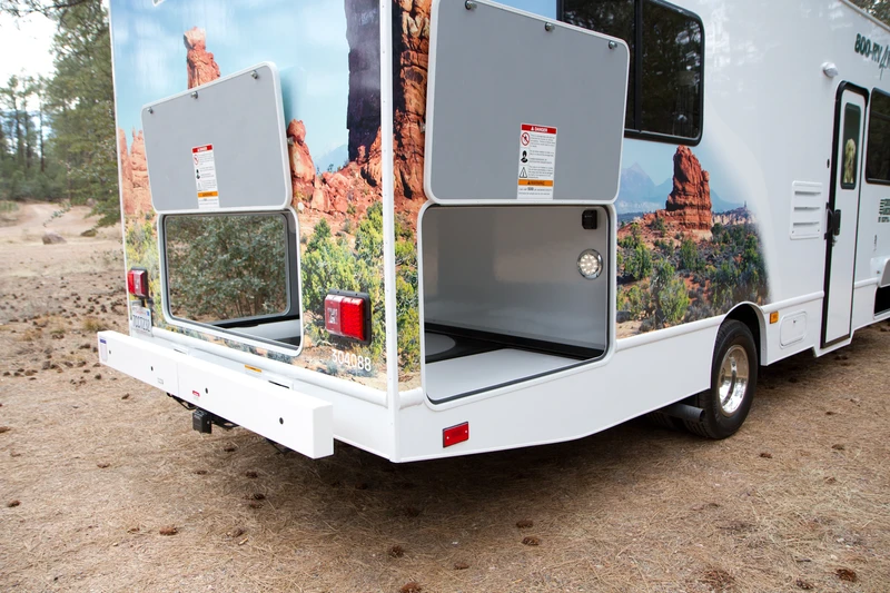 O C30 é um de nossos maiores veículos, sendo capaz de acomodar até 7 pessoas. Ele oferece um quarto privativo na parte traseira, cama de casal na cabine, um sofá-cama conversível e uma cama conversível na pequena sala de jantar. O veículo também oferece um chuveiro separado do vaso sanitário.