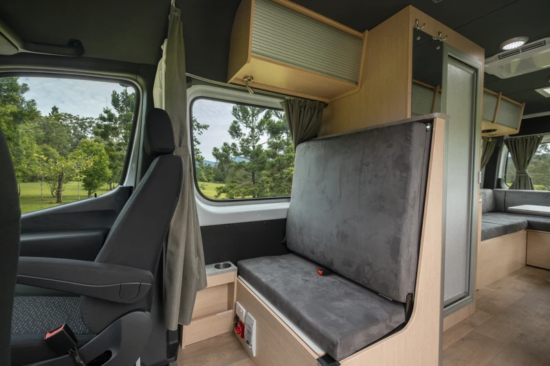 O Ultima Plus atende até 3 pessoas (2 adultos e 1 criança), mantendo o conceito de motorhome compacto com um pouco mais de espaço de pernoite. A área interna é flexível e se adapta bem ao dia a dia em família. O banheiro completo, com toalete e ducha, e a cozinha completa garantem mais independência na escolha dos roteiros. Uma ótima opção para famílias pequenas que desejam conforto, segurança e liberdade de movimento.