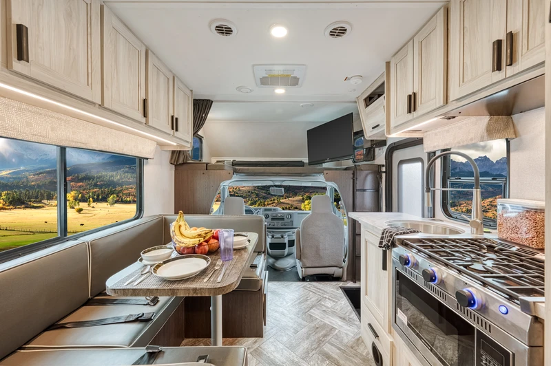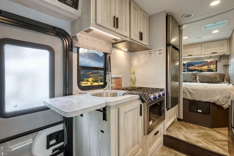 O C Medium (M) 23–25ft oferece o equilíbrio ideal entre espaço interno e facilidade de condução. Projetado para casais ou pequenas famílias, este modelo conta com camas confortáveis, cozinha completa e banheiro privativo, entregando o essencial para uma experiência de viagem autêntica e sem preocupações. Compacto o suficiente para circular com agilidade, mas espaçoso para relaxar após um dia de estrada, é o motorhome ideal para quem valoriza liberdade, conforto e versatilidade em cada destino. Uma escolha perfeita para viver o verdadeiro espírito “Livre por Natureza” da Motorhome Experience.